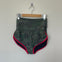 Woman wearing a red and white checkered punchy surf top and patterned original betty bottoms shorts on a white background