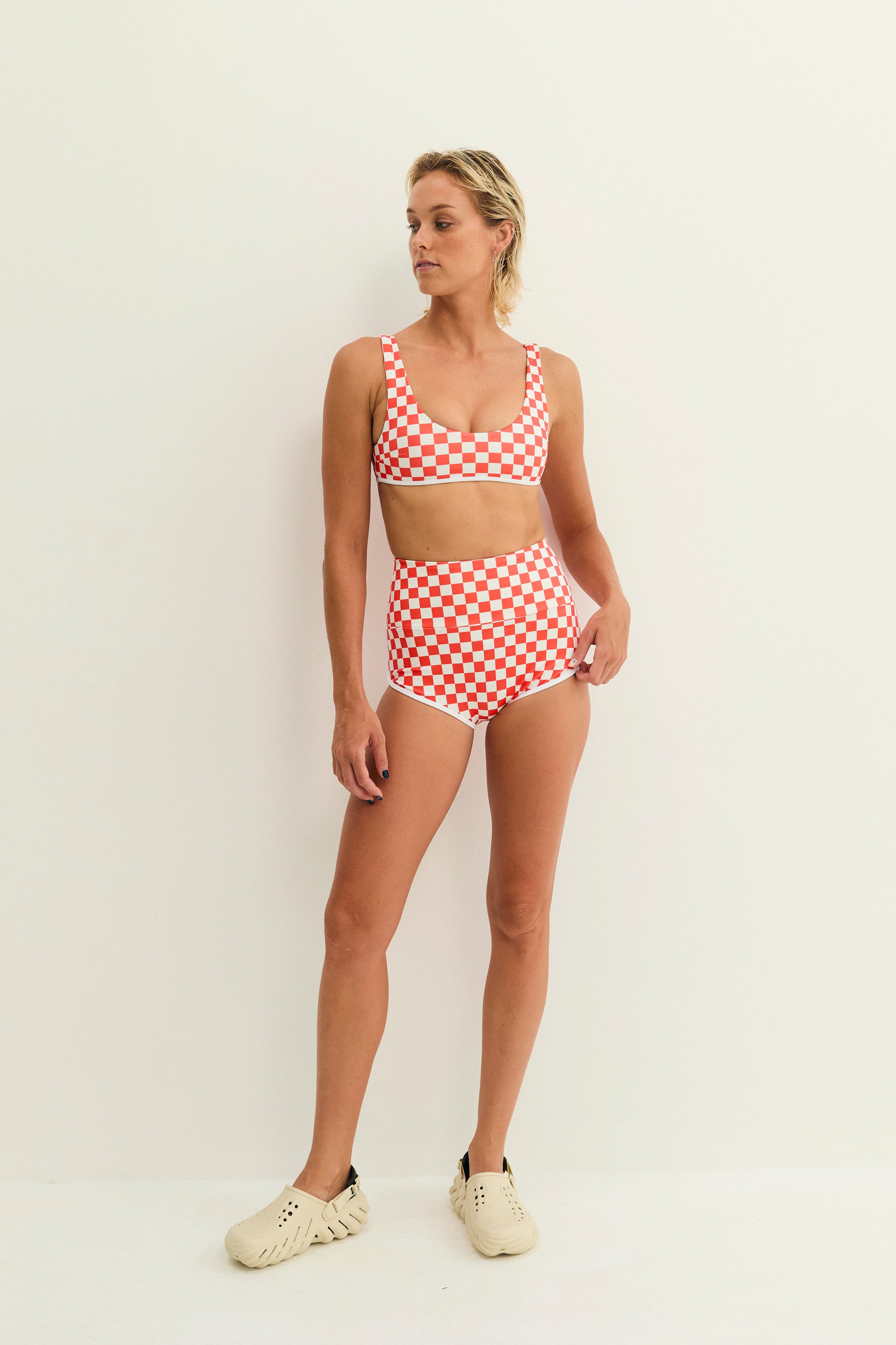 All stretch fabrics loosen slightly when wet so we recommend for your swim & surfwear to feel snug and firm when tried on dry, on land.