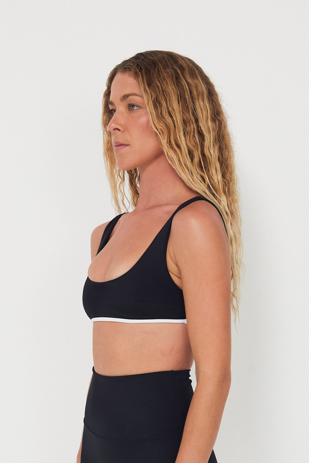 Made for oceanwomen who want a no-fuss fit that moves with them, our Bralette Swim Top is your go-to for surf, swim, and sun. Featuring a deep scoop neck, removable padding, contrast binding, and clean lines, this top is equal parts sporty and femme.