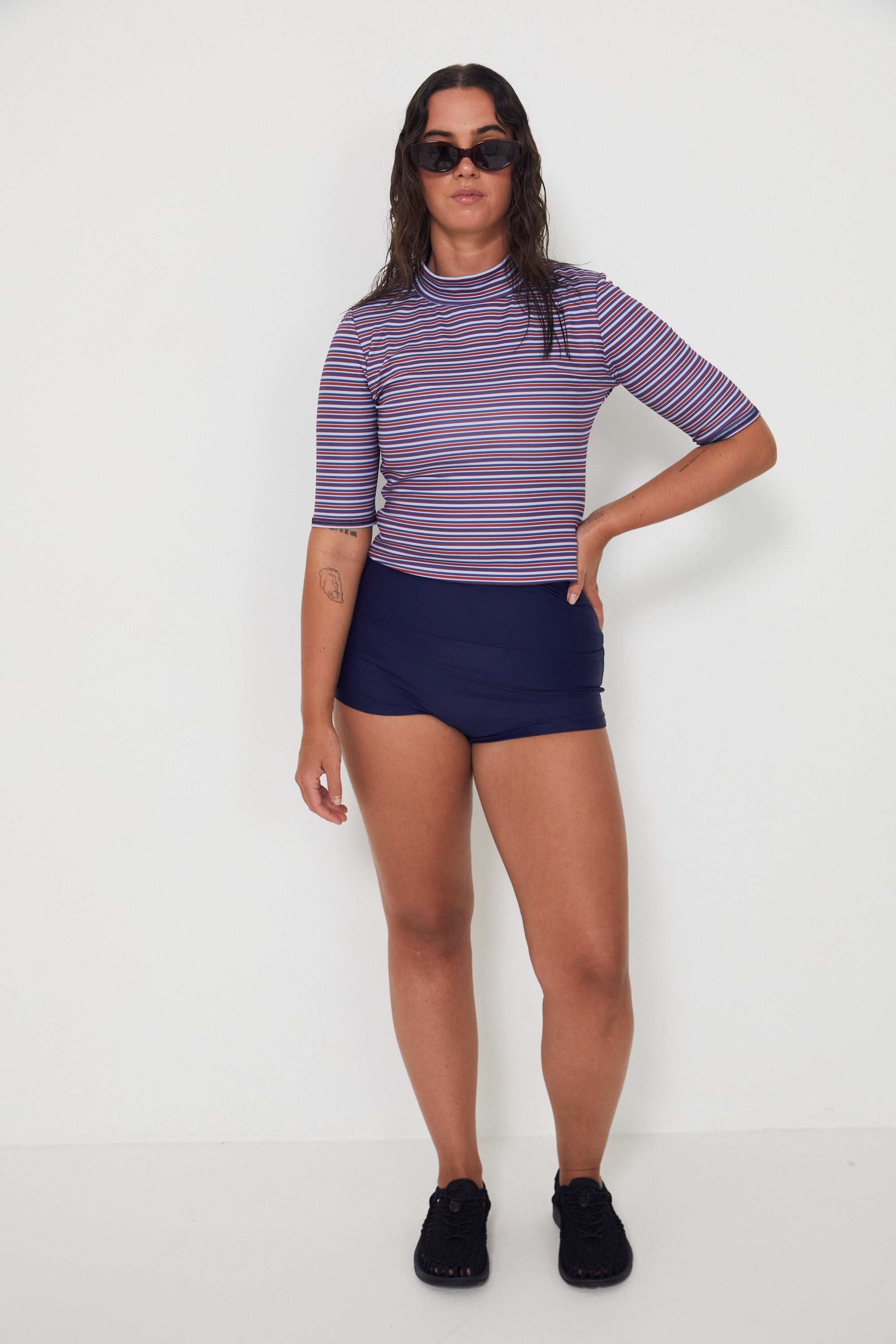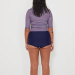Our design challenge has never deviated since the first surf leggings we designed way back in 2012: how to create stylish and fashion-forward sun protection that actually functions well in punchy surf and supports our own expression of personal style in the lineup. We're expanding our rashguard offering with this new style: ruching at the sides for you to style up or down, with your preferred surf bottom of choice, and a well-covered neckline. Boom.