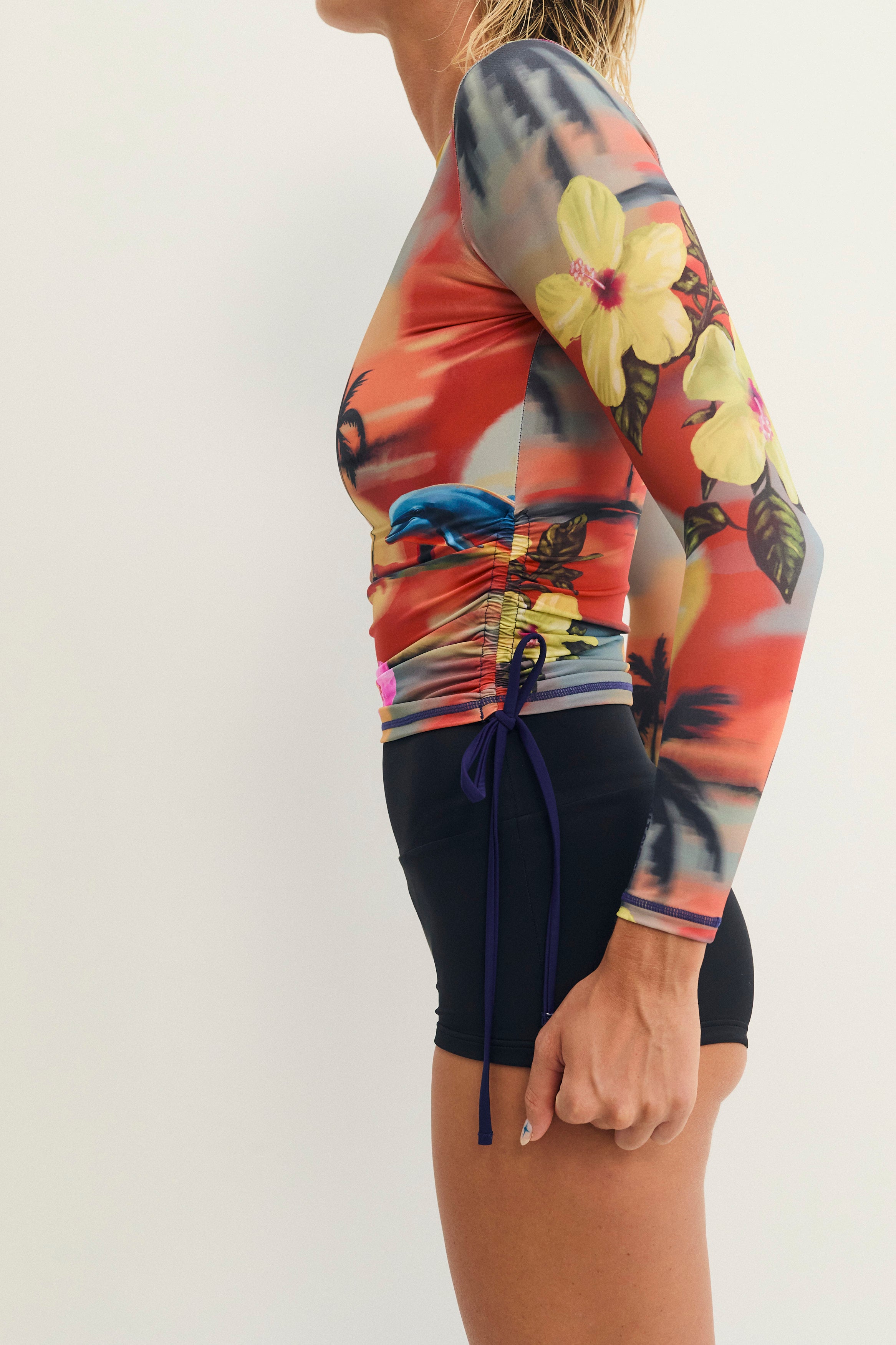 Our design challenge has never deviated since the first surf leggings we designed way back in 2012: how to create stylish and fashion-forward sun protection that actually functions well in punchy surf and supports our own expression of personal style in the lineup. We're expanding our rashguard offering with this new style: ruching at the sides for you to style up or down, with your preferred surf bottom of choice, and a well-covered neckline. Boom.