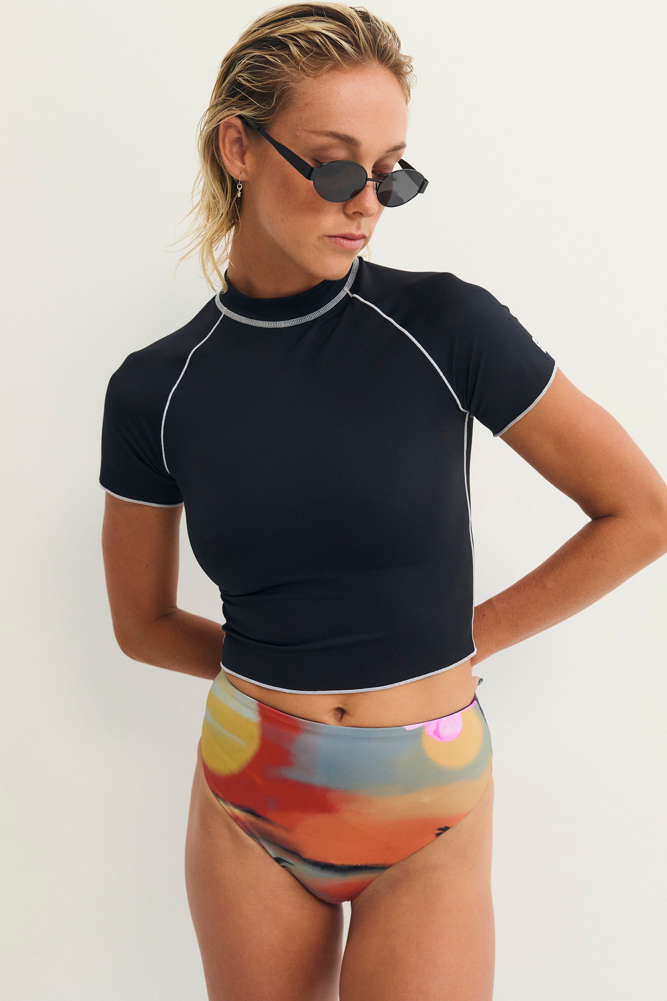We dialled in the design with a cropped torso for freedom of movement (and a peek of your favourite surf bottom), raglan sleeves for easy paddling, and a streamlined fit that stays put when the surf turns on. Built for all-day ocean missions, this piece balances style and performance like a pro.