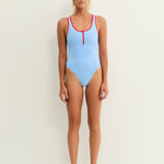 We designed the Zippy Onepiece as our nod to 90s vintage with enough functionality for everyday surf missions and beach to bar hangs. Sporty vibes but make it a wee bit femme.